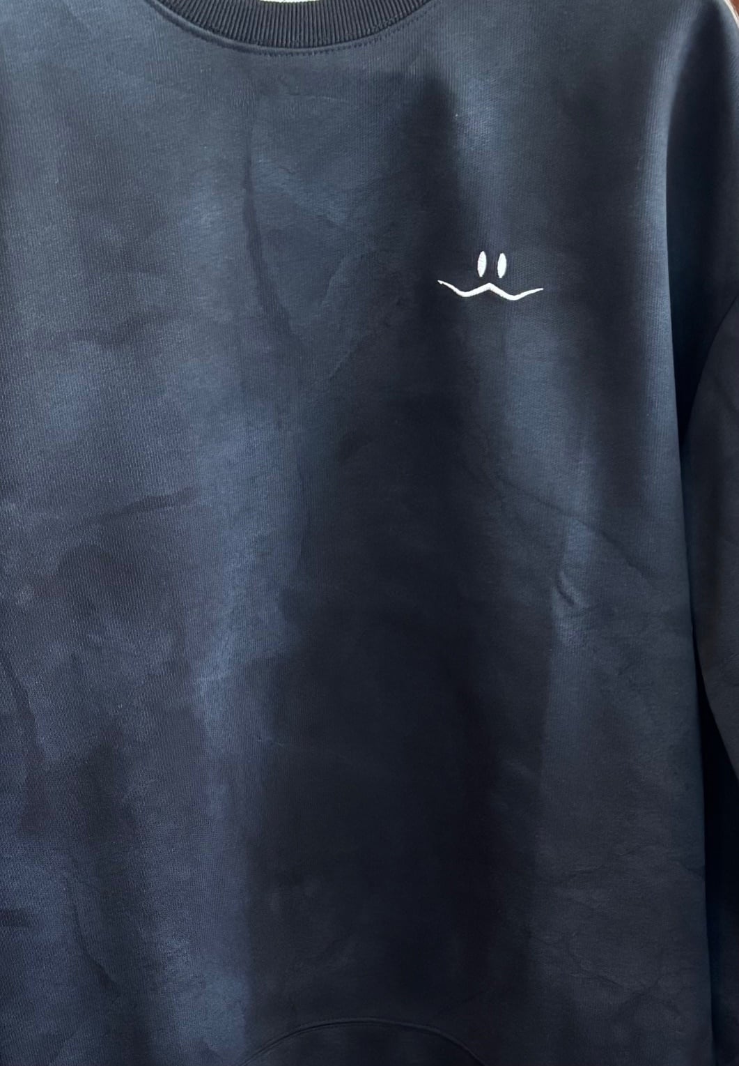 両サイドにスリットが施され、 生地を2枚重ね合わせたフェイクレイヤード仕様。 単なる「ブラック」ではなく、 タイダイ染のような絶妙なカラーリングを施した 「普通」とは一味も二味も違う1枚。