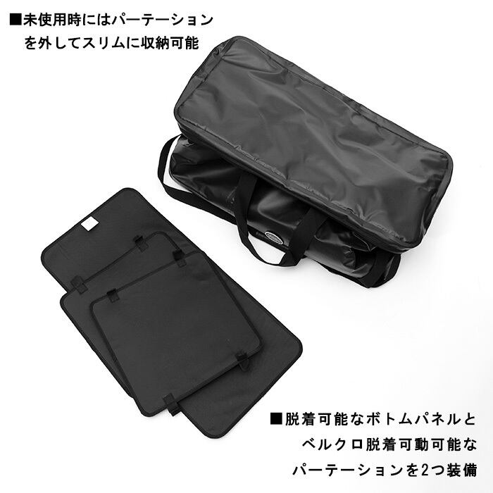 ラフに詰め込める。また、ソフトクーラボックスとしても活用できます。ボトムパネル1 枚とパーテーション